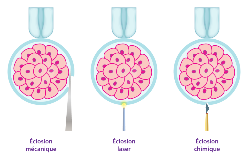 Trois techniques sont utilisées pour l'éclosion assistée :