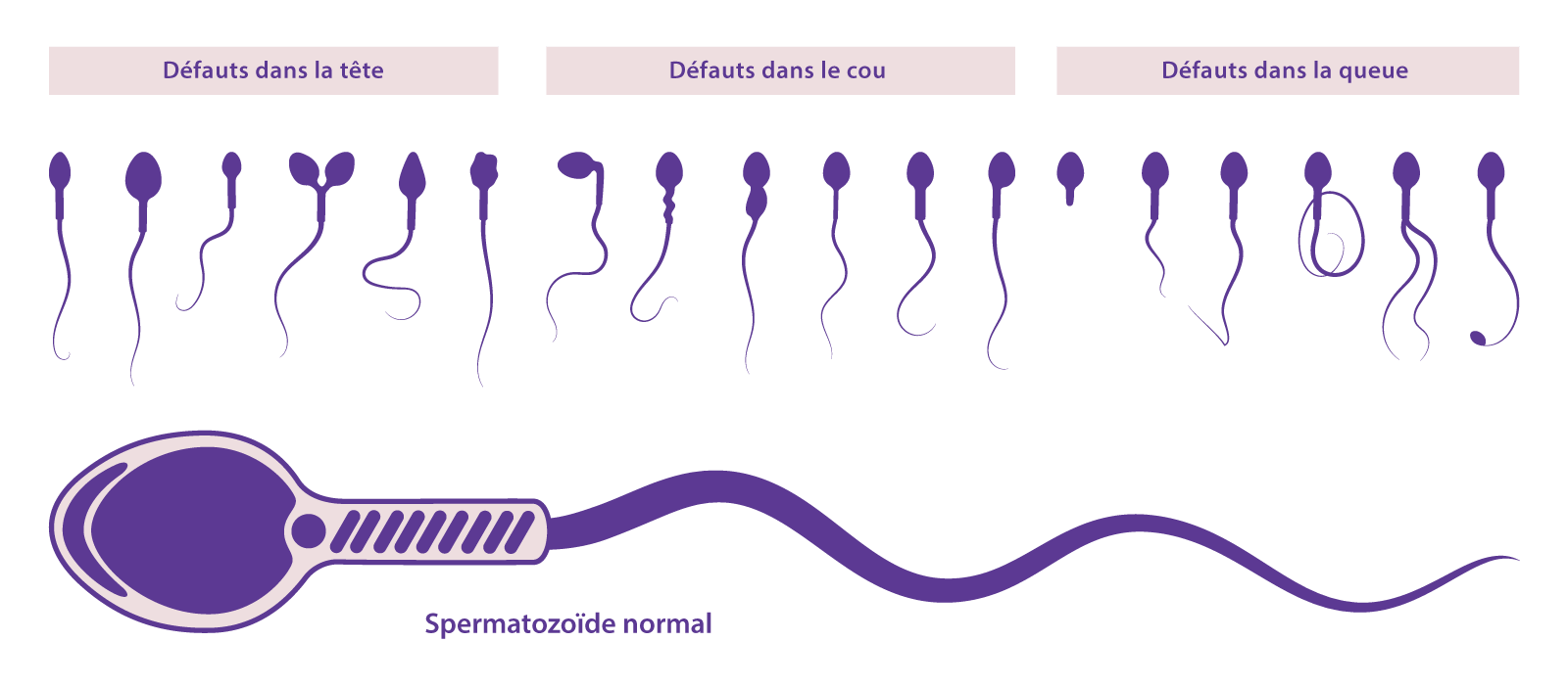 Les spermatozoïdes ont souvent des têtes anormalement formées et ont souvent des vacuoles (cavités) et on croit que ces spermatozoïdes anormaux sont moins susceptibles de transporter du matériel génétique normal.