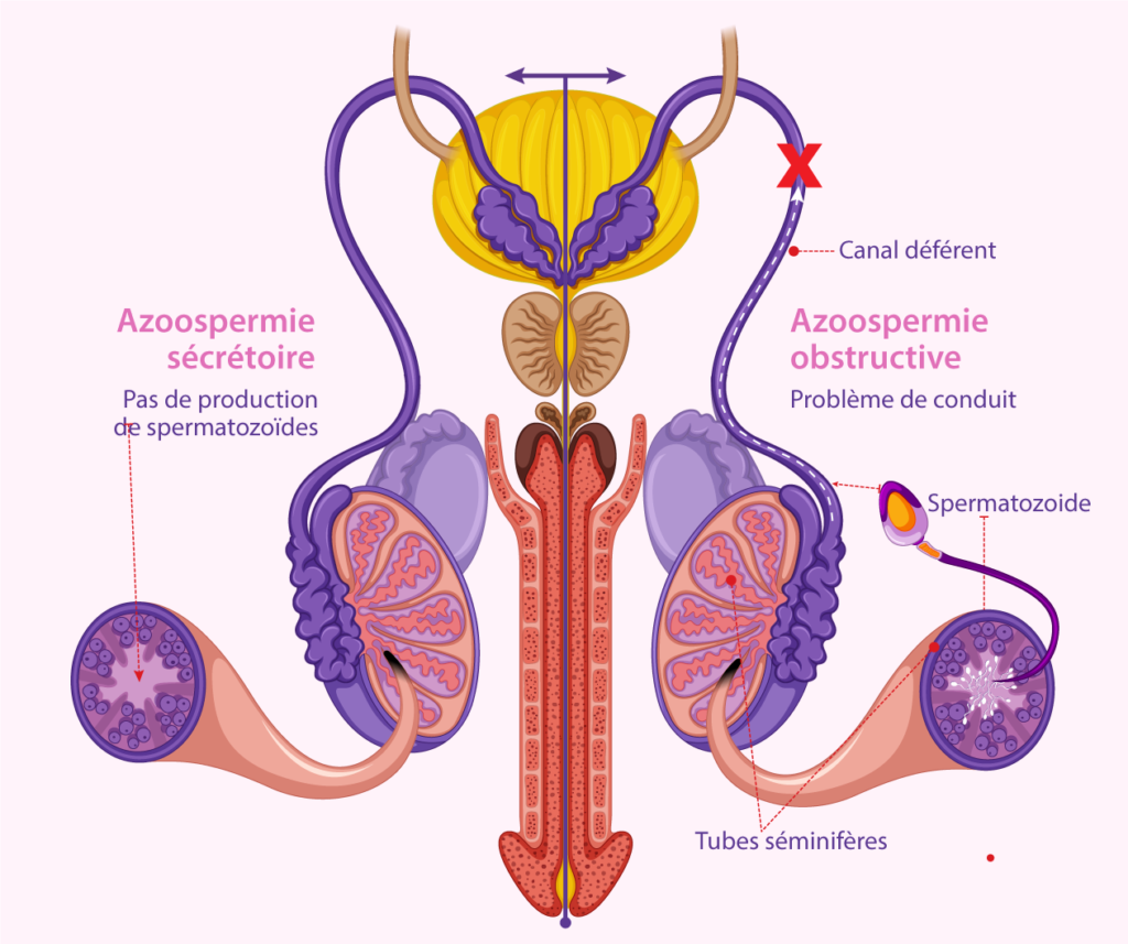 L’azoospermie: Les 2 principaux types d’azoospermie sont l’azoospermie obstructive et l’azoospermie non obstructive.