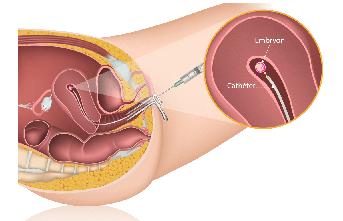 Le transfert d’embryons est la dernière étape du processus de fécondation in vitro (FIV) où l’ovocyte fécondé — devenu un embryon voire blastocyste (embryon de 5 jours)— est placé dans l’utérus de la femme.
